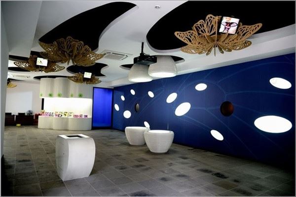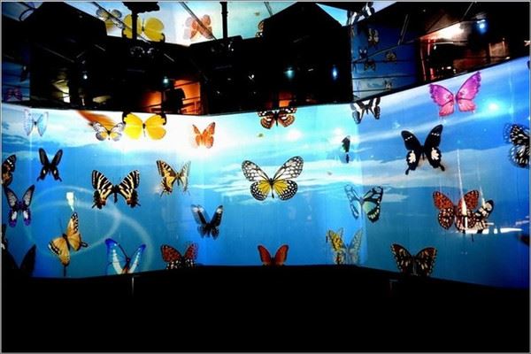 景区里最近新建了蝴蝶馆,里面有蝴蝶标本陈列,还有声、光、电等高科技的显示。