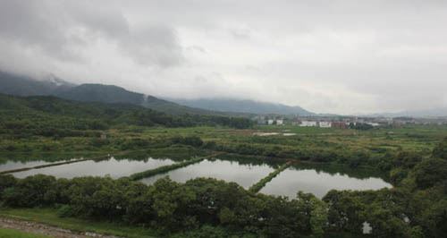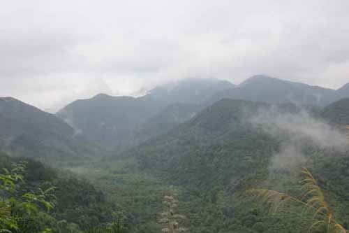 放眼望去,山峰在云雾缭绕中,显得有几许神秘,了虚和尚建的庙堂就在云雾笼罩下的最高山峰处。这里原始的植被在方圆几十公里的崇山峻岭之间尽情蔓延,涓涓细流在植被上流淌,百汇成川,汇聚到风景区的水库中央。水随山转、山依水立,港湾湖汊穿山进谷、峰回路转,形成天然水上迷宫。从风水学上说,山与水交融,赋予这里无比充足的灵气。也许当年了虚和尚在此建庙诵经,看中的也是这里的灵气。