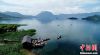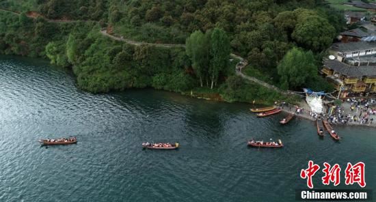 8月中旬,位于四川与云南交界处的泸沽湖景区迎来旅游旺季,湖边成群的游客排队等候乘坐猪槽船。