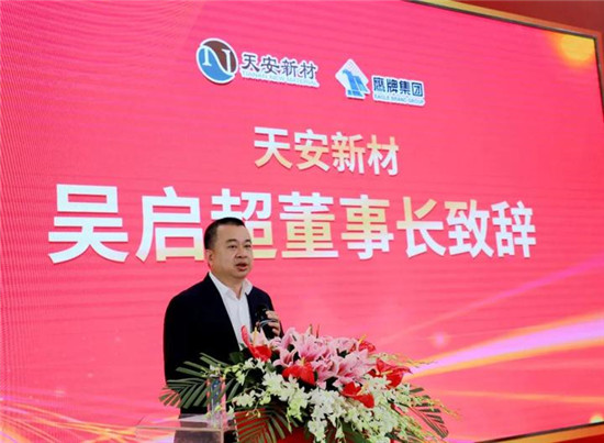 随后致辞的天安新材董事长吴启超认为,天安新材和鹰牌集团的合作是强强联手,品牌赋能、优势互补,可以最大限度发挥双方企业和品牌的知名度,实现价值共赢。他说,成功参与鹰牌集团混合所有制改革,既是天安的荣幸,也是天安的责任。今后,将从生产、研发、产品、销售、渠道、企业经营管理等多个方面开展深度合作,共同推动公司业务经营,推动泛家居领域产业布局,努力助推禅城做强精品产业,让这次混改成为新时代下的经典成功案例。