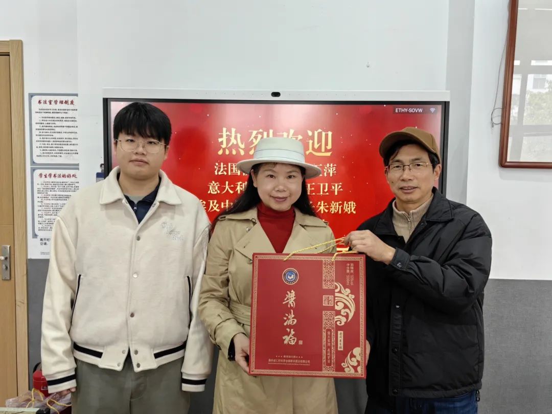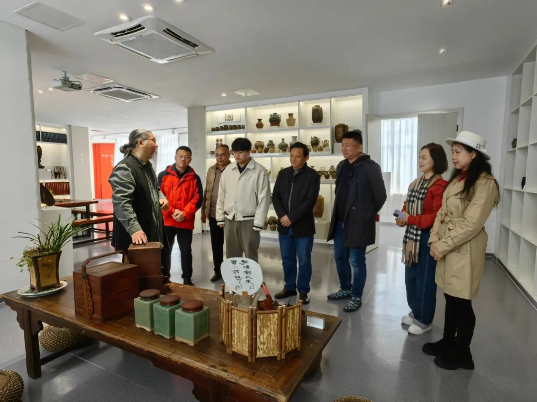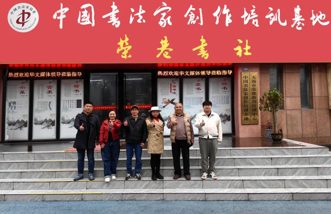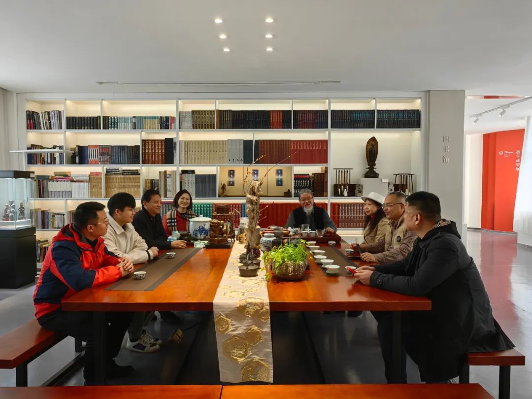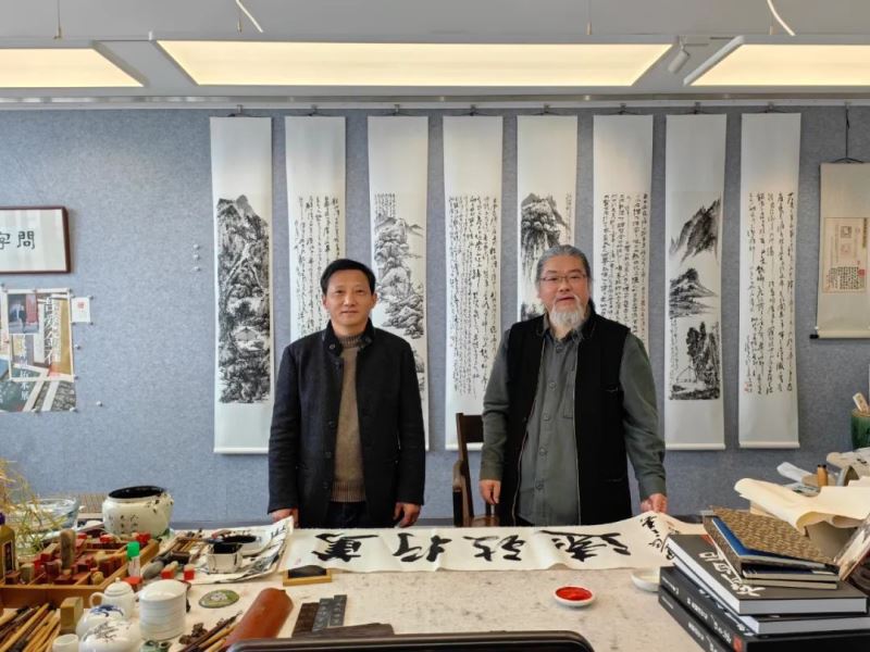 无锡市大华美术馆馆长华斌热情接待来访嘉宾,无锡市滨湖区宣传部四级调研员、中国书法家协会会员何明参与接待。