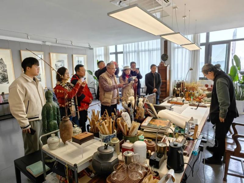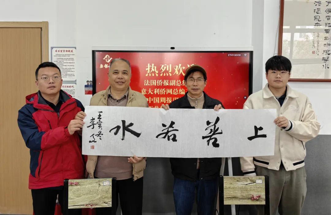 无锡中糖总经理徐利和今世缘酒业锡常大区无锡办事处总经理冯维想陪同法国侨报副总编王萍、意大利侨网总编王卫平、埃及中国周报副社长朱新娥、西非华声总编金浩赴无锡市华侨文化交流基地大华美术馆参观交流。