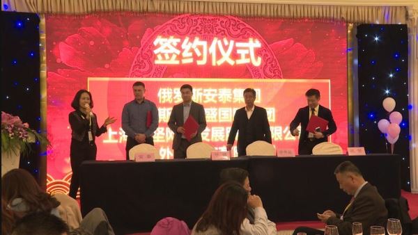 俄罗斯安泰集、莫斯科华盛国际集团、中外运山东有限公司齐鲁事业部、上海欧坚网络发展股份有限公司签约仪式