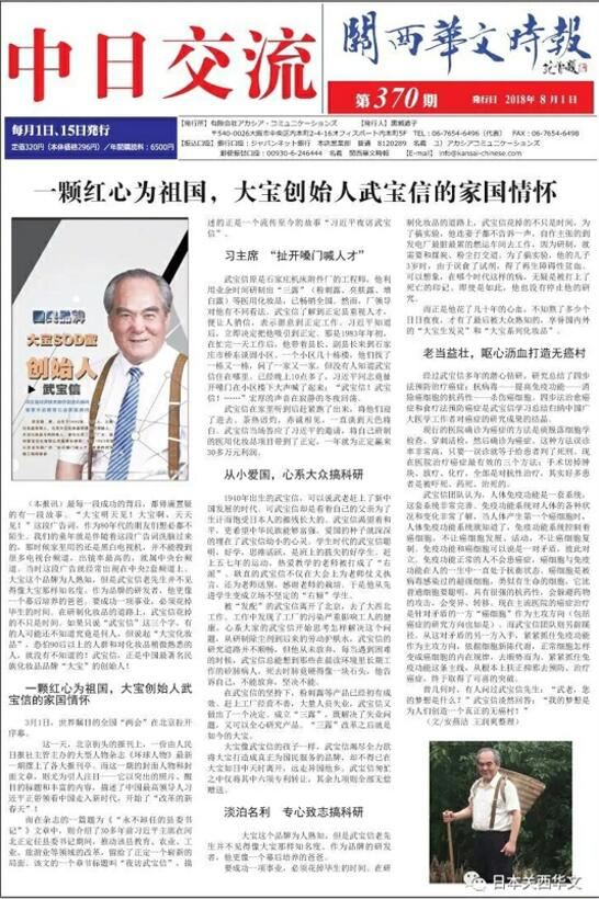 8月1日,日本大阪塔医院为中国民族品牌大宝创始人武宝信先生举行了隆重了授牌仪式,正式启动“武宝信医药健康(易宝堂)日本研究中心”,同时正式聘请大宝创始人武宝信为日本大阪塔医院名誉院长。
