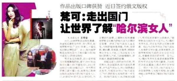 据韩国新华报报道(记者 曹明权)面对本报记者的采访和提问书写《哈尔滨女人》作家为何专门写这本题为《哈尔滨女人》书的初衷时,这名当代中国知名青年女作家梵可(实名孙艳萍)是这么回答记者的,因为哈尔滨的女人大气、豪爽、豁达,既有雷厉风行、果断干脆的女强人风范,也有柔美之魅力,但从没有一部专门写这些女人的长篇著作,于是,她便开始留心搜集这方面的资料。话题一打开,这位来自哈尔滨的女作家便跟记者聊起了有关此书诞生前后的那些事儿。
