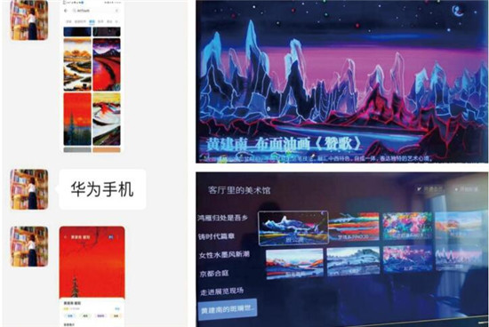 更令人意想不到的是,华为、小米、TCL等手机、电视屏幕的屏保图片(如下组图),都选用了黄建南的油画、国画和瓷画。这些电子产品开机以及待机状态时,黄建南的作品自动出现在屏幕上,在十几秒内定时更新,像放幻灯片一样,给人一种美的享受,真是美不胜收。