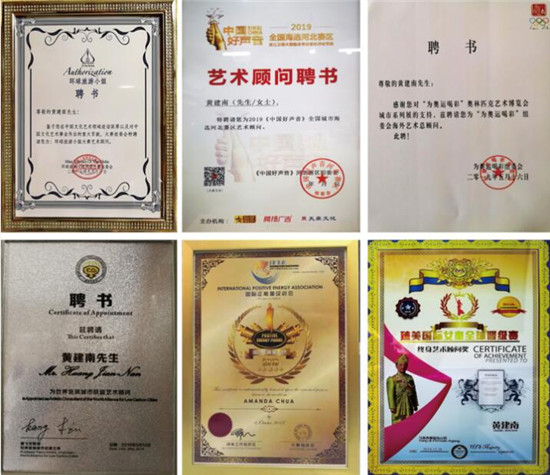 此外,黄建南还是“中国好声音”全国城市海选河北赛区艺术顾问、“臻美国际女皇全球晋级赛”终身艺术顾问等。