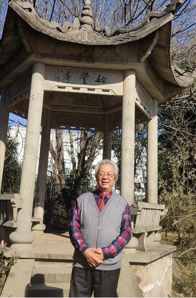 郑齐天先生在始丰亭前合影。