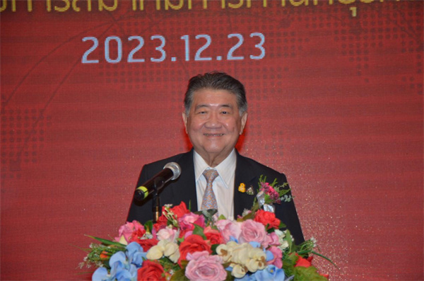 回顾即将过去的2023年,随着疫情缓解,从年初中国首开对泰等国出境游,到年底泰国对华实施免签,中泰各方面交流合作得到快速恢复和发展。去年习近平主席成功访泰,两国进入共建命运共同体新时代。泰国新一届政府致力于拼经济、促发展,赛塔总理前不久成功访华,两国发表联合新闻公报并签署涉及外交、“一带一路”、数字经济等多领域的合作文件,中泰合作、发展不断深入,势头强劲。新年新气象,新届新作为。希望商会在邝锦荣主席和新一届执委会团结带领下,继续发挥在政策咨询、项目对接、法律援助、企业落地等各方面优势,锚准商会定位,开拓商会会务,提升服务水平,为促进会员事业发展和中泰全方位交流合作作出新的更大贡献!