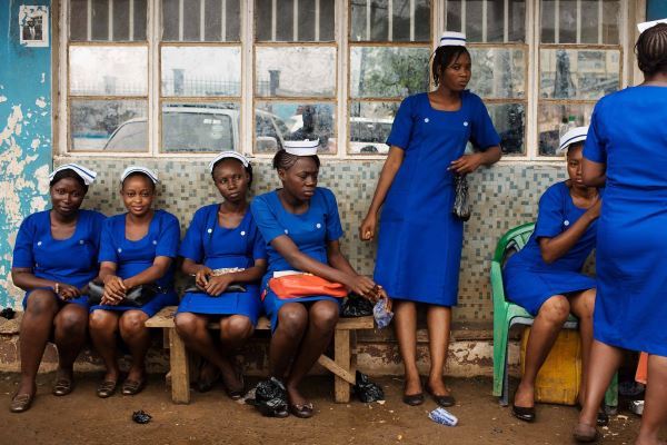 在塞拉利昂首都弗里敦学习护理的学生正等着进行最后的资格考试,之后她们就能参加到与埃博拉的战斗中去了。图片来源:Samuel Aranda/ National Geographic