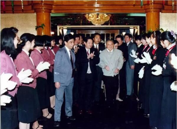 1992年1月,邓小平同志在深圳国贸大厦受到员工们的热烈欢迎。梁伯权 摄