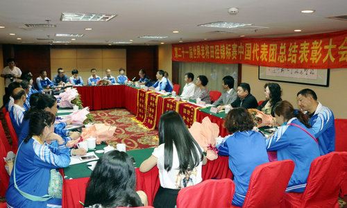 第21届世界老将田径锦标赛中国代表团表彰大会现场 中国产业经济信息网财经频道(记者:许顺喜 摄影:武振江)报道,2015年8月18日上午10时许,第21届世界老将田径锦标赛中国代表团表彰大会在北京天坛饭店隆重举行。