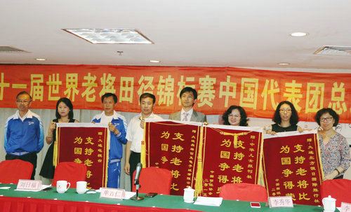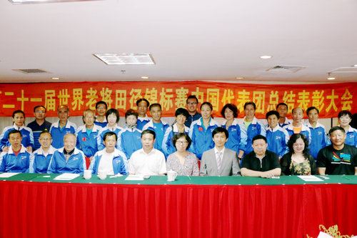 国家体育总局田径运动管理中心市场开发办办公室主任李秀华发表讲话 第21届世界老将田径锦标赛中国代表团团长、大连体育场场长刘日福在活动现场发言时说:“中国参加第21届世界老将田径锦标赛的27位老将由法国里昂凯旋归国,并带来了1金1银5铜及23项进入8强的突破性成绩,这也是中国老将参赛10余年来获得的最好成绩。尤其值得称赞的是,88岁高龄老人苏朋学在气温超过36度的情况下坚持比赛,并以百米跑21秒、跳远2米4、跳高1米等优秀成绩,一举夺得十项全能冠军,创下了中国老将战队史无前例的第一枚金牌,应该说可喜可贺。”