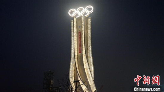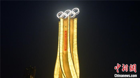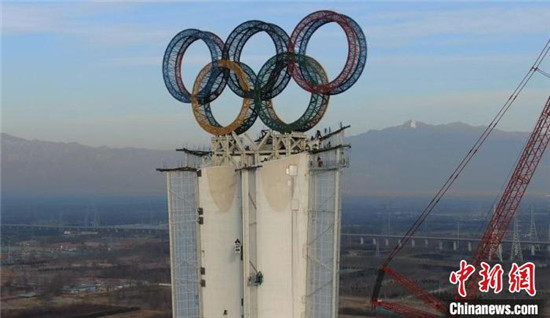 1月25日,由中建二局三公司承建的“海陀塔”顺利竣工,奥运五环闪耀延庆冬奥赛区。 中建二局三公司供图