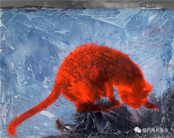 一花一世界,一舟一旅人。陈明华作品的最终指向大概就是喧嚣尘世中孤独的灵魂呈现。他笔下高冷的红猫令人想起八大山人白眼向天、冷眼观世的鱼鸟,其洪荒的风景又与倪瓒的孤寂隔空相遇。画作始于激情,收于反复思索、纵横涂抹的戛然而止,技法高超,情感炽热,气息却一片纯真干净。也许在他看来,人生要精减无数不必要的东西,生命方式如此,艺术风范亦如此。
