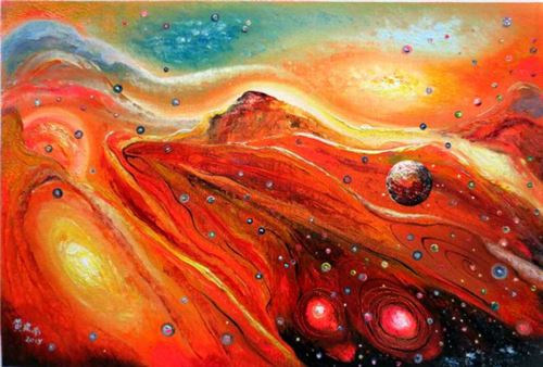 ▲图为黄建南为“爱的启蒙”儿童美育创新公益项目——2019-lan 慈善私宴捐赠的《梦之花》,现场拍得80万元。