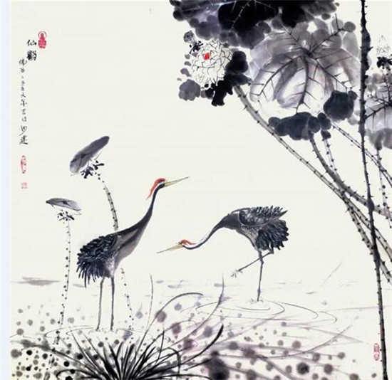 ▲黄建南国画《仙鹤》