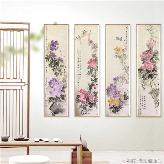图为王菊芳作品《花开富贵》牡丹四条屏。