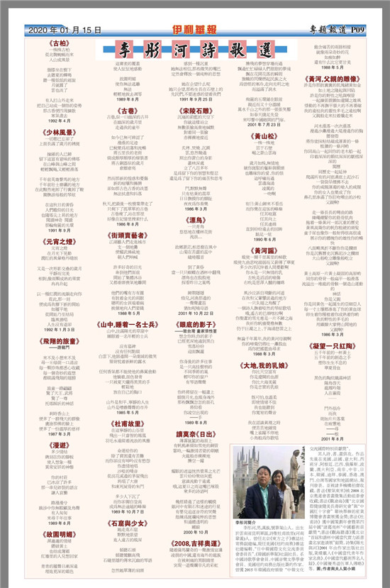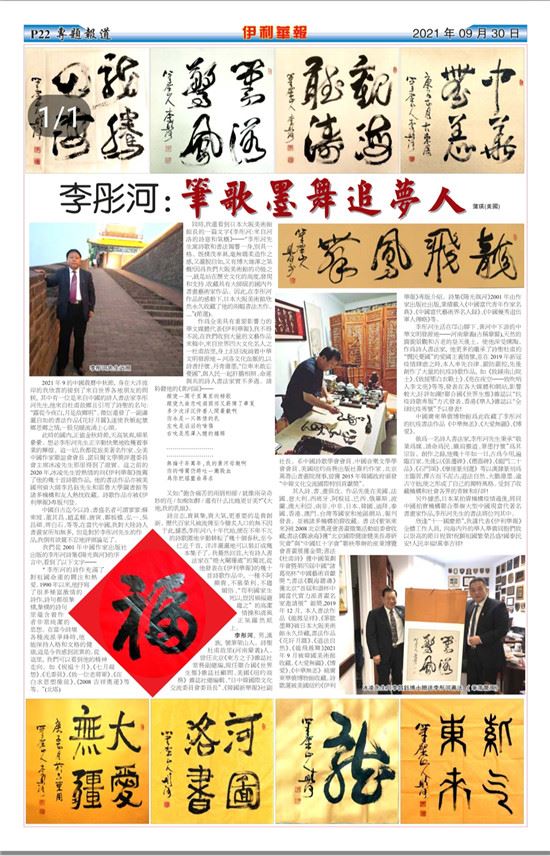 此时的国内,正值金秋时节,天高气爽,硕果累累。想必李彤河先生正辛勤快乐地收获着事业的辉煌。这一切,我都从旅美著名作家、全美中国作家联谊会会长、诺贝尔文学奖评选委员会主席冰凌先生那里得到了证实。这之前的2020年,冰凌先生曾热情的向《伊利华报》推荐了他的几十首诗歌作品,他的书法作品亦被美国刑侦大师李昌钰先生和耶鲁大学图书馆等诸多机构和友人热忱收藏。诗歌作品亦被《伊利华报》专版刊登。