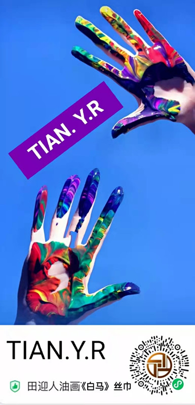 中国油画家不少,开创自己油画衍生品的不多。田迎人的油画已经被艺术市场认可,而她的各种油画衍生品也受到广泛关注。就说这款以她的抽象油画《白马》印制的丝巾吧,浪漫的艺术气息和时尚元素结合,丝丝都是浓厚的情感,绵绵尽显深挚的爱意,一经亮相,夺人眼球。它首先被南京高校网上平台和绿道优品网上平台所隆重推出,也在北京外交学院槐花米咖啡厅、布言布语丽都店、王府井百货大楼、前门步行街新国潮邮政局等处展出并销售。