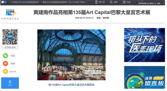 △新华网对黄建南参加巴黎大皇宫艺术展的报道截图