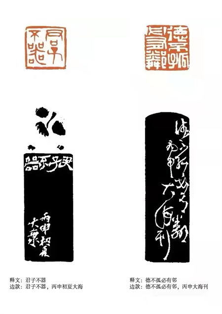 闫大海常常感怀自己在艺术创作理论与实践上系列创新与尝试,对于中国书画篆刻语言和结构中密织着某种情愫,蕴育着天人合一的力量进行了认真的探索,仿佛发现了族人灵魂的母题,它穿越时代,接续传递着东方的雄浑力量,以昭示未来中国人的精神图像,从而彰显出作品的伟大生命的源头和强烈的时代感。因此业界对闫大海评价有“诗书画印文武”“六能者”之称。