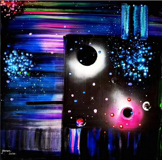 据悉,去年,黄建南被LABA国际艺术节推举的三幅作品《青春之花》《山花烂漫》《千丝万缕之取之不尽》分别被萨拉·莫赫塔里估价超过三百万美元。随后,他的《地球密码1号》《千丝万缕》《天外有天》这三幅作品,又被理查德·韦恩估价超过5百万美元。