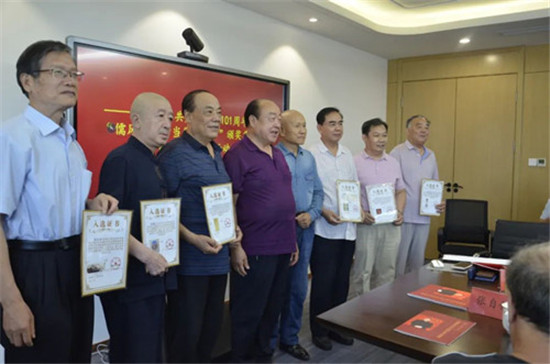 省人大原副主任尹忠显,山东省委原副秘书长孙振华儒风新生活当代书画家颁发荣誉证书。尹宗元和云门子为最受海外华人华侨喜爱的文创艺术作品获奖者颁发荣誉证书。邢学坤为国学讲师唐啸林先生 刘晏汀女士颁发“儒风新生活高级讲师”聘书。