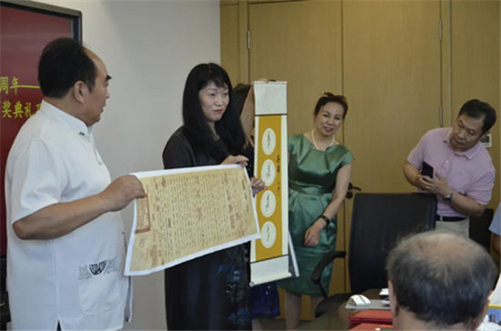孙振华宣读“儒风新生活当代艺术家”颁奖词。书画是一门艺术,更是一种文化。艺术家们用书画作品诠释着生活的真谛,用人间大爱阐释着最美情怀;用人间至孝传扬着中华传统美德。凭着一颗颗赤子之心,见证了中华文明五千年儒风生活血脉相随的道义──让我们向获奖者致敬!
