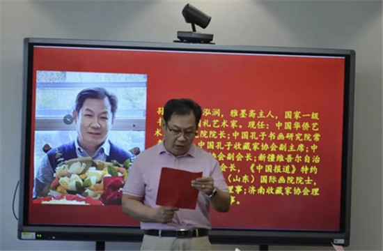 中国华侨艺术文化研究院院长、中国孔子书画研究院常务副院长、香港卫视(山东)国际画院院士孙树柱先生代表书画艺术家致辞,他表示儒风新生活在时代的召唤中应运而生,在历史的选择中挺身而出,必定在伟大的实践中担当重任。我们艺术工作者将在两创实践中继续深耕、在两个结合中先进引领,创作引领社会文明风尚、以文化人的优秀作品,倡导儒风新生活,积极探索与中国道路相匹配、与中国历史文化传统可对接的东方伦理型生活方式。在马克思主义中国化的历史性飞跃和创造性升华的伟大事业中奋发有为、再立新功。