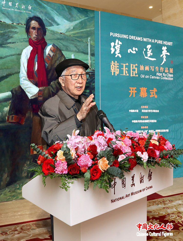 中国美术家协会名誉主席靳尚谊在“璞心逐梦——韩玉臣油画写生作品展”开幕式上致辞时,讲述了韩玉臣与中央美院的深厚渊源,高度评价了韩玉臣通过50年刻苦实践,终于走进中国国家博物馆和中国美术馆,这两个最高艺术殿堂的理想追求