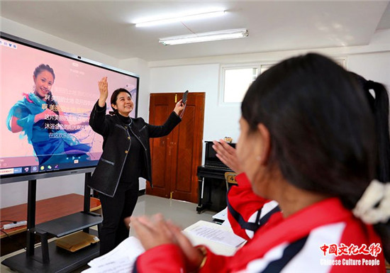 云南大学昌新国际艺术学院音乐系主任夏夏老师为沧源佤族职业技术学校学生上声乐课