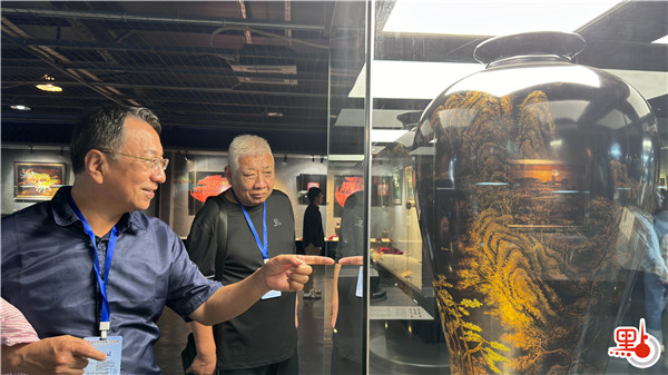 在陽江漆藝院,參訪團成員不僅得以一覽陽江漆藝悠久的歷史,還通過動態的漆工藝製作流程演示,近距離了解陽江漆藝傳統的製作過程。當參訪團成員得知漆的材料分別是大漆和腰果漆,其中腰果漆就是用平時家裏常吃的腰果果殼榨取而來,紛紛開玩笑說要「回家試一試」。站在一個漆瓶展櫃前,中非新聞社亞洲採編部主任林璐說,「你看這些松葉,真的是細如毛髮。什麼叫工匠精神?在這裏,我們都見識到了!」
