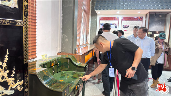 「據傳清道光年間,有一個外國商人在海邊偶然拾獲一隻漆皮箱,抹乾後,箱子外表光滑如故,更為驚奇的是,開箱後發現箱子滴水未進,裏面的衣服和購買憑據還完好如初。驚詫不已的外國商人逢人便誇這件事,自此以後,陽江漆皮箱聲揚海外,銷量紅火。」在講解員的解說中,參訪團一行走進了陽江漆藝院。這裏有「陽江漆器歷史展廳」、「陽江漆藝精品展廳」、「陽江漆藝製作流程動態展演區」、「陽江漆藝文創產品展銷廳」等,是集創作、展示、旅遊、研發、教學、生產和銷售於一體的綜合性特色文化展示窗口。因為漆器具有堅固、防潮、耐水、耐鹼、耐熱、耐磨、耐大氣侵蝕等特點,參觀者可以輕輕觸摸,實現「零距離」接觸。