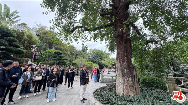 菩提樹下,參訪團成員聆聽六祖和禪宗文化的故事。(點新聞記者黃寶儀攝)