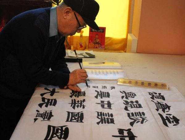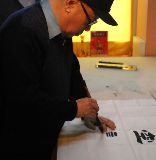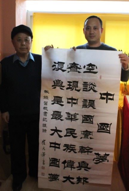 伟大复兴共圆中国梦活动书画展组委会副主任书画家崔元泽先生挥毫泼墨:“空谈误国,实干兴邦,实现中华民族伟大复兴是最大中国梦 。”