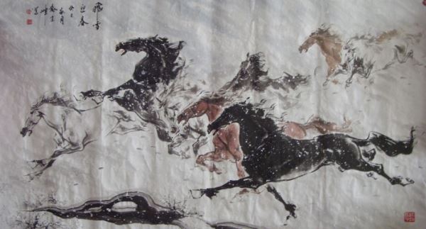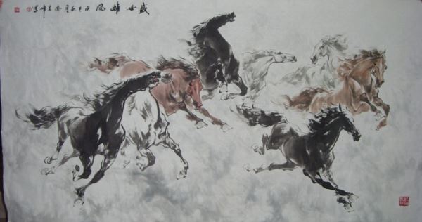伟大复兴共圆中国梦活动书画展组委会评审委员会委员乔建峰先生书画“万马奔腾”。