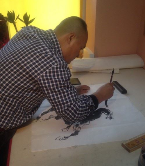 乔建峰,男,1972年生,古河东运城中条山人,当代实力派书画家。自幼酷爱绘画,儿时家与生产队养马圈社为邻,便天天去看马,画马。古尤忠于画马。多年来,一直坚持不懈,对当代画马名家作品一一临习.研究.其学古而不泥古,察今而不被今所为,融入自己内心思想,多次到草原“以马为师”对照写生,渐形成自己的画风。