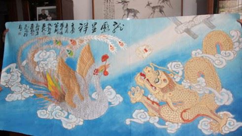孔老师为人低调,画上祥龙瑞凤腾空托起神舟九号飞船,飞向太空与在轨运行的天宫一号目标飞行器进行交会对接。其中的凤就是由著名国画艺术家孔祥华所创。!