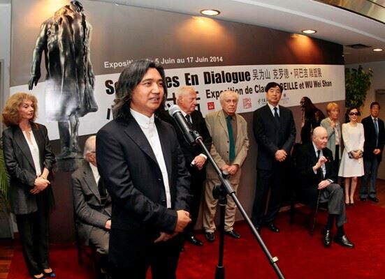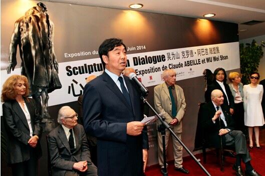 6月5日,作为纪念中法建交50周年的一项重要活动,由中华人民共和国文化部主办,中国艺术研究院和法兰西学院承办,中国美术家协会学术支持,巴黎中国文化中心和美爵基金会协办的“心灵对话——吴为山、克罗德•阿巴吉雕塑展”在法国巴黎中国文化中心隆重举行。中国驻法大使翟隽,中国驻法使馆文化参赞李少平,全国政协委员、中国美术家协会副主席、国家当代艺术研究中心主任,中国艺术研究院美术研究所所长、中国雕塑院院长吴为山,法兰西学院艺术院主席、当代雕塑大师克罗德 •阿巴吉,法国文化和新闻部文化活动总监、原吉美博物馆馆长吉耶斯,法国外交部代表、中法建交50周年总协调人代表布瓦柔、萨尔都,法兰西艺术院终身秘书长、院士多德里夫,法国罗丹博物馆馆长代表埃尔潘,巴黎市立赛努奇亚洲艺术博物馆副馆长、中韩绘画研究员贝莱克,中国古汉语学家汪德迈,法兰西艺术院通讯院士高立昂,法兰西艺术家协会主席德拉乐芙,法国国家美术沙龙主席米歇尔金,法国艺术家之家协会主席阿龙等领导及海外艺术家出席开幕式。