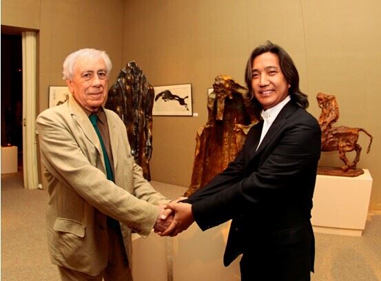吴为山和法兰西学院艺术院轮值主席、当代雕塑大师克罗德 •阿巴吉亲切交流