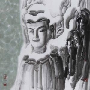 观王玉良的画,我们不禁感言:他在宗教与灵魂、石刻与绘画、历史与现实之间为我们架起了一条新的精神桥梁,他让历经风雨洗礼的千佛脸上重新绽放了笑容,更为古老的中国画艺术注入了一股鲜活的力量,使得国画的万花筒中从此多了一副新生的面孔。我想,随着时间的推移,王玉良的水墨造像系列作品所蕴涵的独特艺术价值与历史价值将愈加彰显出来,也将为愈来愈多的人们所衷爱。