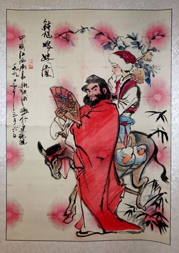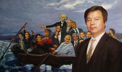 姚继成在艺术的创作中,融合中外画法的精髓,结合各种画派的特点,自成一体,在历史的长河里,把相似的人物放到一起,形成自己的“穿越转思画派”,带给人们无限的遐思。