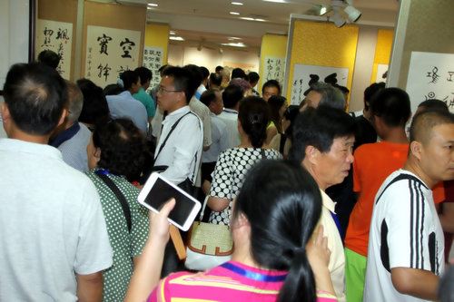 参观者将荣宝斋书画展览现场围的水泄不通