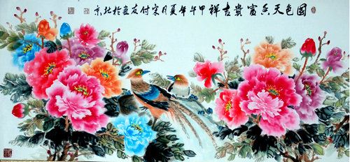 宋付友接受本网主编许顺喜采访时赠送国画作品《国色天香》 “一幅优秀的花鸟画并不是花鸟的单纯描绘,而是借助于花鸟的描绘,表现画家对自然、对生活的感受和意愿。托物言志,借景抒情。当画家的思想感情和表现对象的神韵气氛交融在一起,通过特殊的构思和形象塑造,巧妙地反映在画面上,使画产生一种动人的境界,这就构成了意境。意境是花鸟画的灵魂,有了意境,作品才有感人的艺术魅力。”著名书画家宋付友接受中国产业经济信息网财经频道记者采访时说。