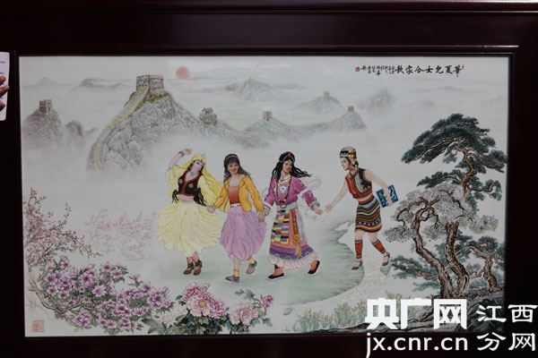 任瑞华釉上粉彩瓷板作品《华夏儿女合家欢》
