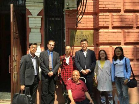 代表团一行与乌克兰国家美术学院副院长奥斯塔普・卡利丘卡合影(奥斯塔普・卡利丘卡左二 朱同景左四)