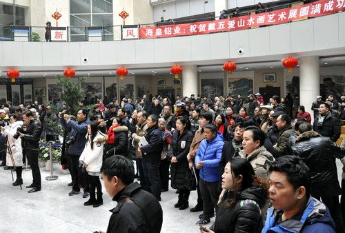戴五爱贺新春山水画艺术展开幕现场 环球文化艺术网(记者:许顺喜)近日,由安阳市文广新局、市文联、市美术家协会主办;安阳市文峰区宣传部、文峰区文联、殷都区文联承办;安阳市两馆管理中心、文峰区美术家协会协办的“贺新春・戴五爱山水画艺术展”于2月4日在安阳市两馆开幕后,参观者络绎不绝。可以说在展示中华传统文化的同时,也为安阳广大市民送上一份节日的文化大餐。