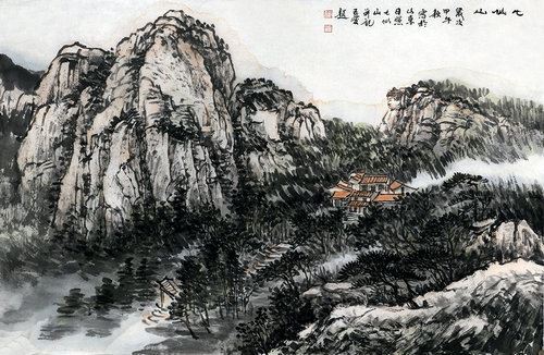 戴五爱参展国画作品《七仙山》
