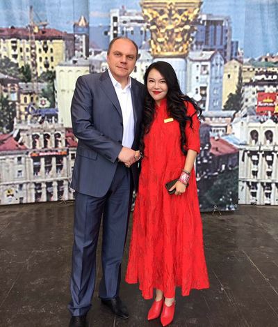 乌克兰现代艺术学院院长(文化部前任部长)库乐尼亚克与马晓薇亲切交流